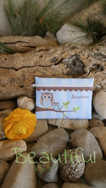 Παιδικές μπομπονιέρες βάπτισης. Μπομπονιέρα βάπτισης αγόρι πορτοφολάκι, υφασμάτινο με θέμα κουκουβάγια χειροποίητο.